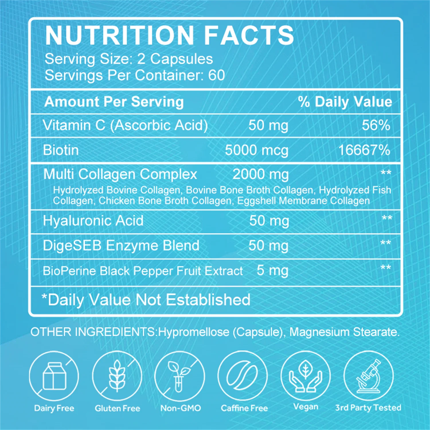 Multi-Collagen Capsules 5000mg for Joints Hair Skin and Nails Healthy, 240 Capsules